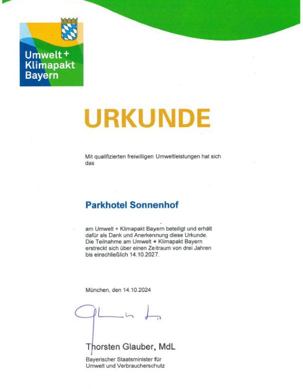 For over 20 years our environmentally aware management has been awarded. In almost every year since 2004 we have received a gold medal of the Bavarian department of environment and economy and therefore we are members of the "environment agreement of Bavaria”.